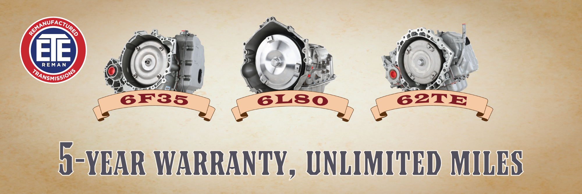 When you install an ETE REMAN transmission, you’re not just getting a reman, you’re getting confidence built right in. And now, that confidence comes standard with our NEW, World’s Best, 5-Year, Unlimited-Mile Warranty on most 6-speed and higher remanufactured transmissions. Because when we say we stand behind our work, we mean it.