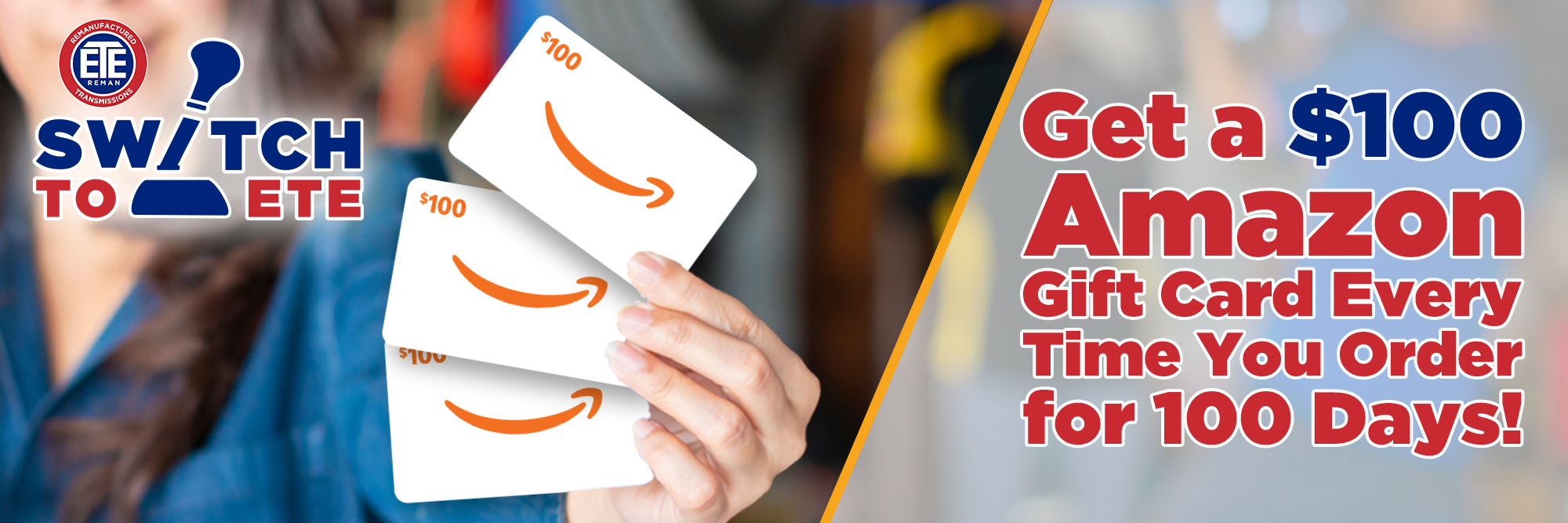 Introducing our boldest, most rewarding offer yet for new or returning customers: Switch to ETE now and get a $100 Amazon gift card for every powertrain product you purchase—for 100 days. Yup, every. single. one.